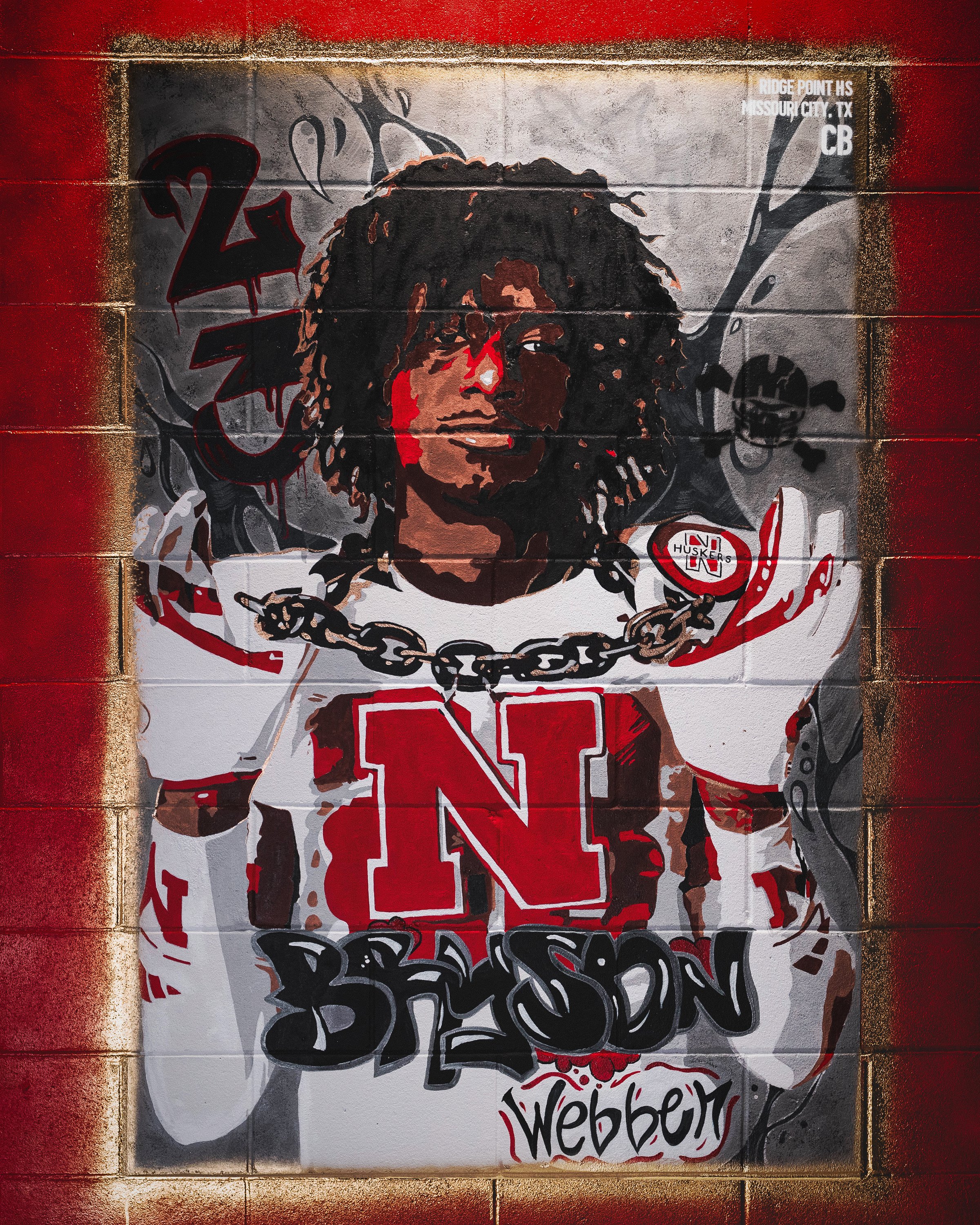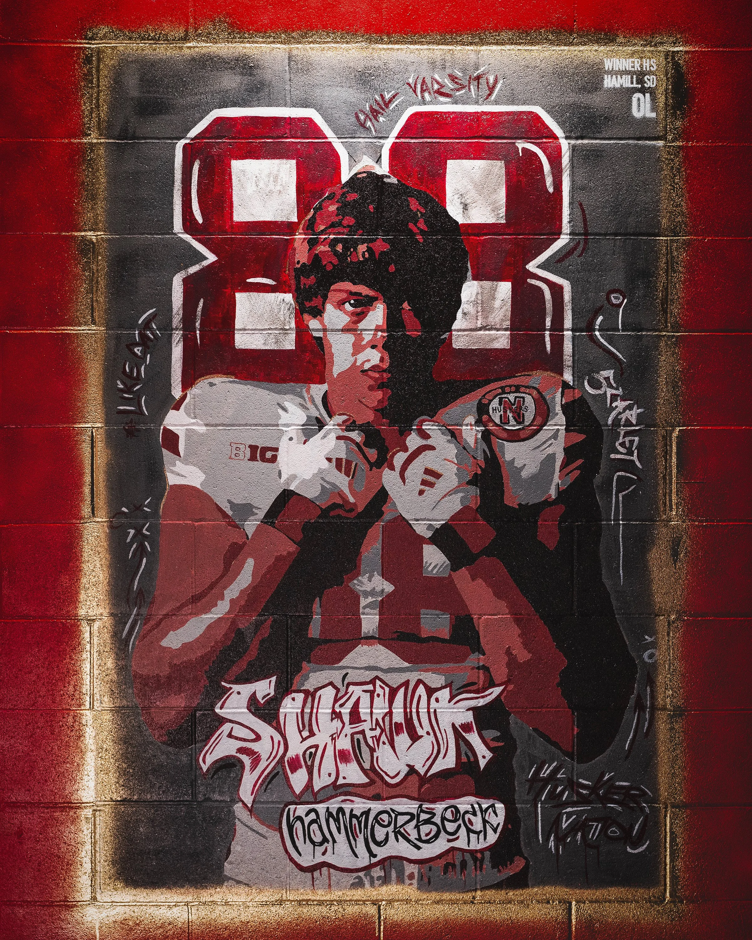 During fall of 2024, I was part of a group of four students hired to complete a series of murals for the Nebraska Football team’s 2025 signees. We completed the project over the course of the semester, with extensive planning and trial and error before completing 24 portraits. We worked with the Creative Media team comprised of students led by Jordan Litten, as they documented the entire process. The 20 signees’ portrait images were featured on the UNL Husker Football social media accounts, alongside process videos created by the team, on December 4th, 2024.